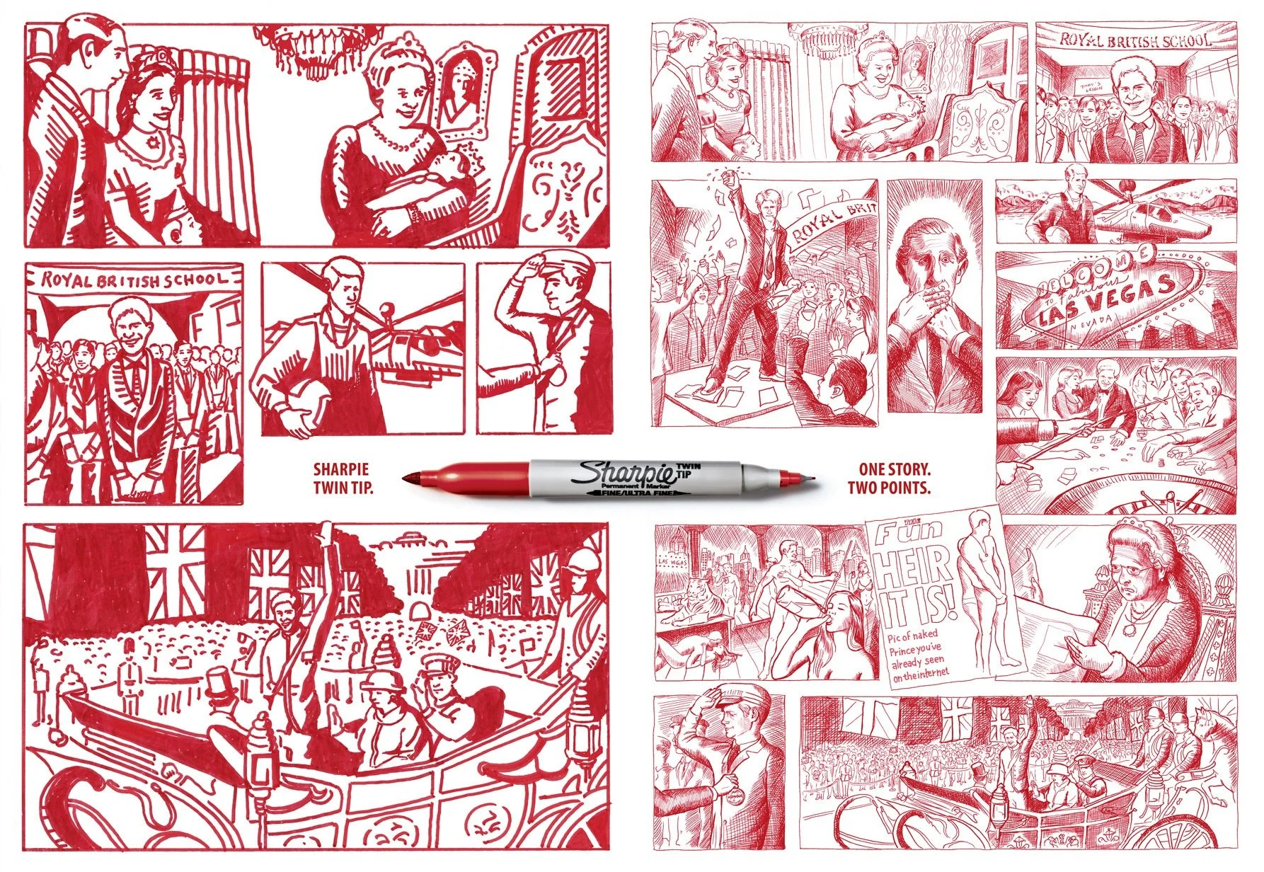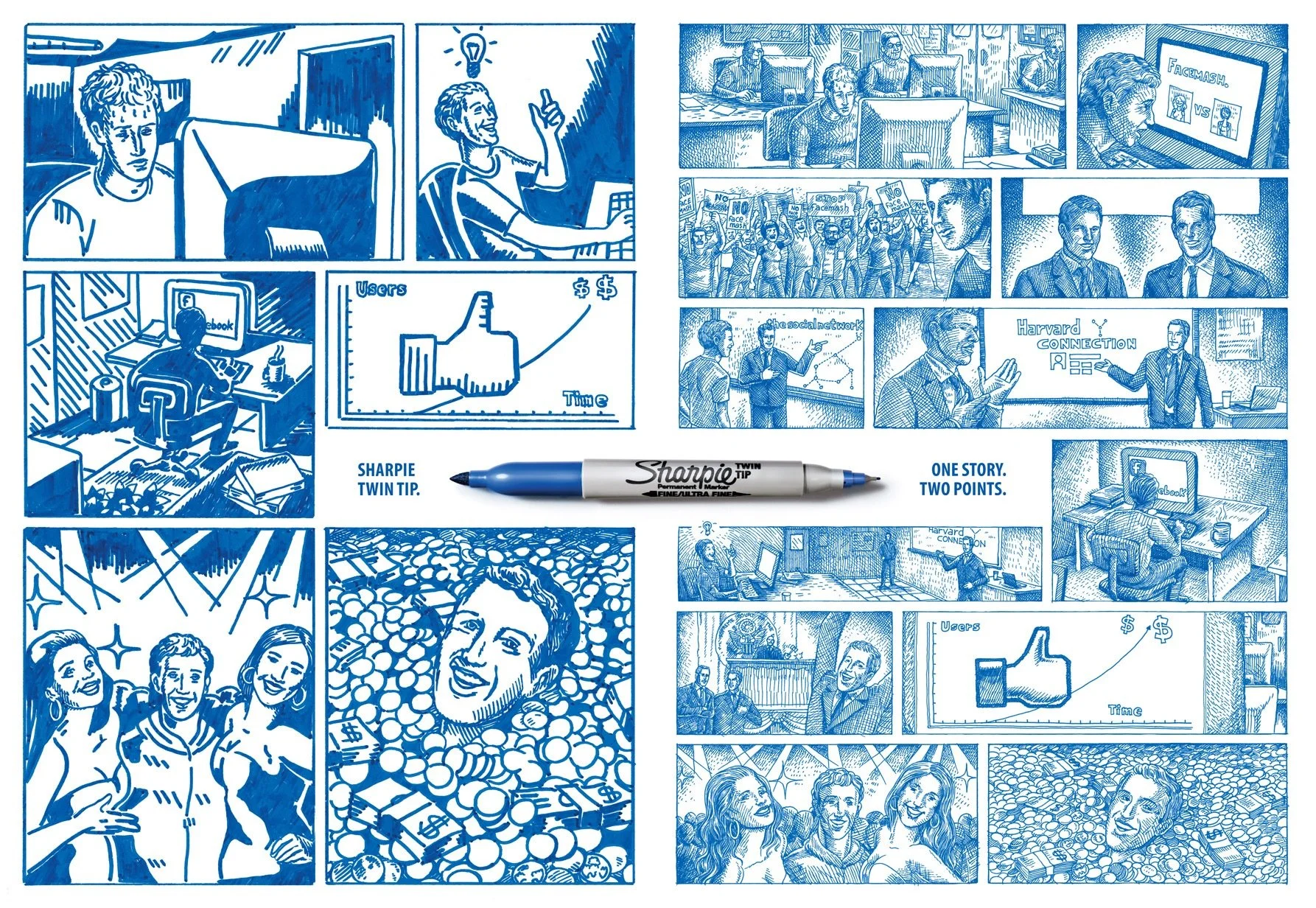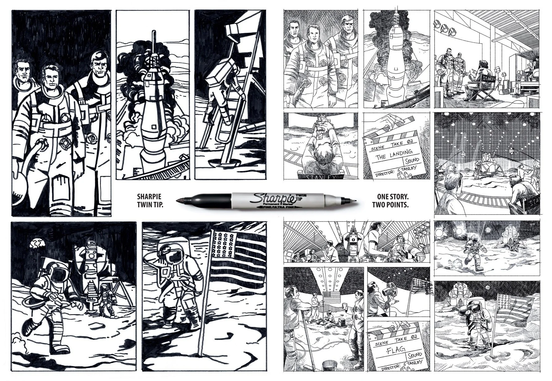 This campaign was created for Comic Con 2013, an event with a high frequency of its target audience: illustrators and designers. The goal was to showcase different possibilities for using the same product. The thicker tip is ideal for quick shading and filling, while the finer tip is the best choice for details.